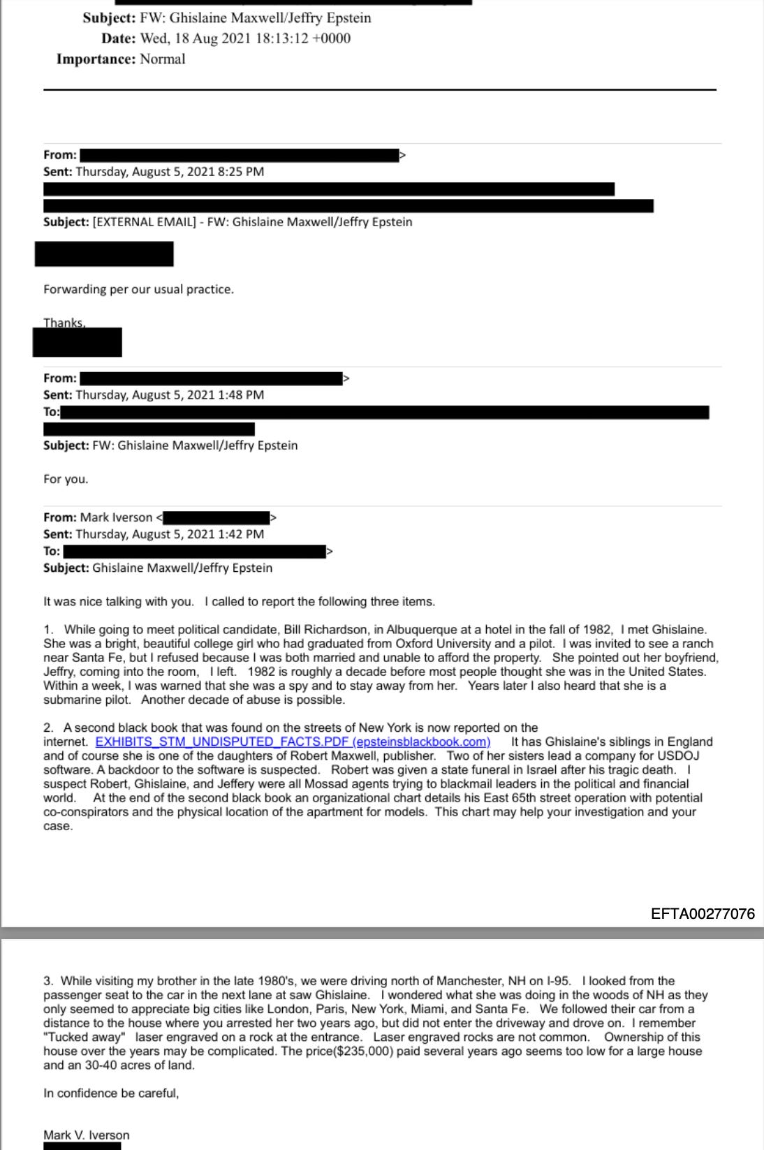 Also there is another email, from Mark V. Iverson, that makes it clear that Epstein and Maxwell had known each other from College days and that Maxwell was considered a Mossad agent or asset from then as well. Quite possibly her boyfriend of the time, Epstein, was as well. Maxwell of course had money. So Epstein was off to a good start.