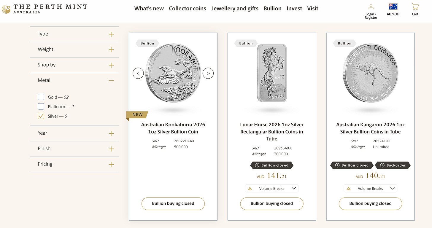 The Perth Mint has stopped sales for the weekend again as they have been doing a bit lately (as Mondays have become unpredicatable)