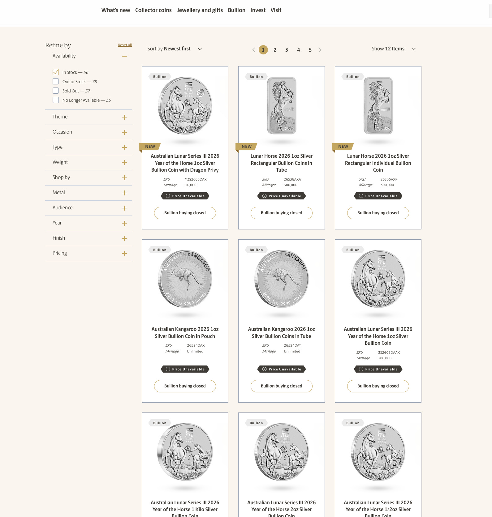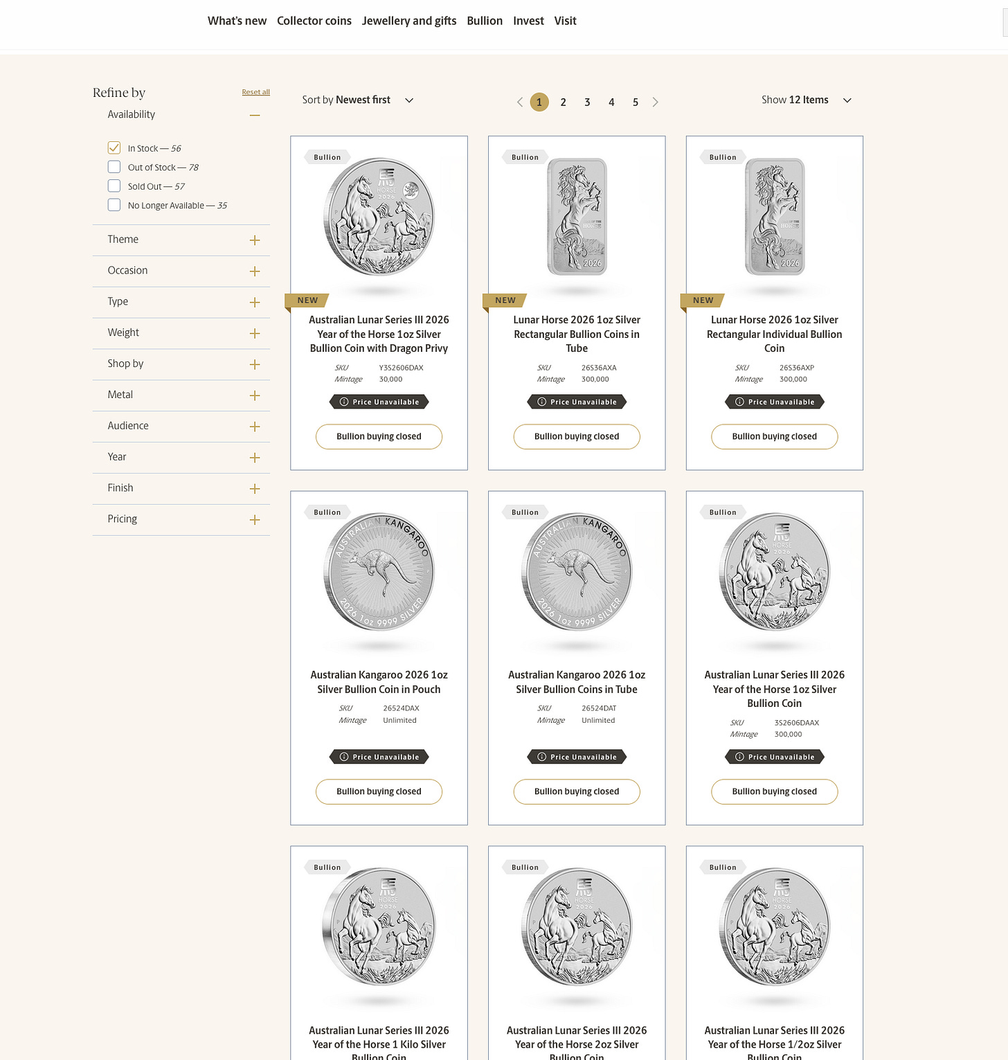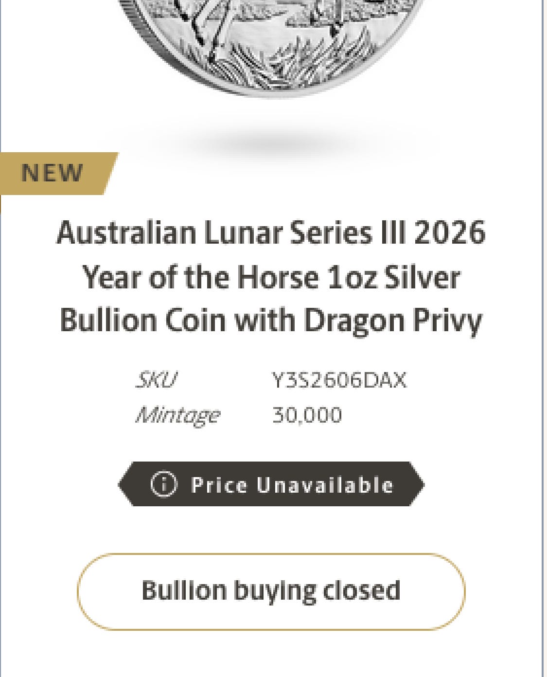 “Price Unavailable” & “Bullion Buying Closed”